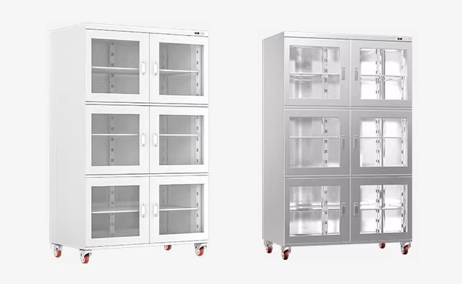 從而達到防潮、防霉、防氧化、防銹、防劣化、防質變等需求功能的箱體、柜體。防潮箱適用范圍很廣,有